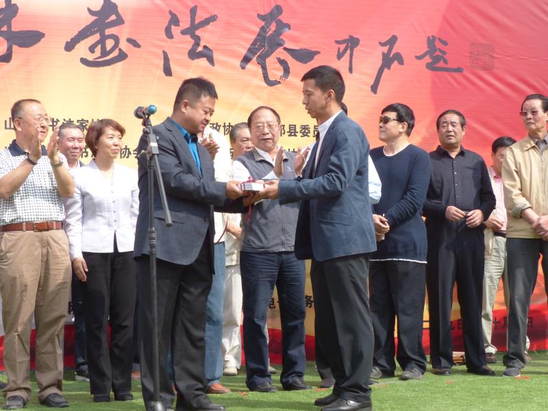9月29日,由山西省書(shū)法家協(xié)會(huì)、政協(xié)山西省祁縣委員會(huì)聯(lián)合主辦,縣政協(xié)教科文衛(wèi)體和學(xué)習(xí)委、山西晉商文化研究所、山西盛大鋼結(jié)構(gòu)工程公司、山西美璃電子商務(wù)公司等14家單位承辦的“喜迎十九大翰墨抒情懷”頡林書(shū)法展在祁縣開(kāi)展。山西省書(shū)法家協(xié)會(huì)顧問(wèn)、大眾書(shū)畫(huà)院常務(wù)副院長(zhǎng)兼秘書(shū)長(zhǎng)郝志遠(yuǎn)宣布書(shū)法展開(kāi)展,縣委副書(shū)記李軍榮致辭,縣政協(xié)主席李郁明主持,縣政協(xié)副主席王建剛、申建平及縣政協(xié)部分委員、各界人士代表出席。開(kāi)展儀式上,頡林先生向山西盛大鋼結(jié)構(gòu)工程有限公司董事長(zhǎng)、山西美璃電子商務(wù)有限公司董事長(zhǎng)賈怡明先生贈(zèng)送了書(shū)法作品,以表盛大鋼構(gòu)和美璃電商對(duì)本次書(shū)法展的大力支持。